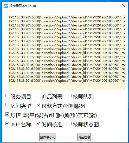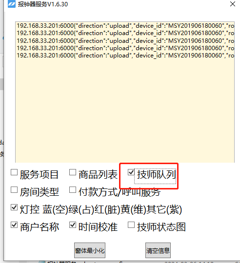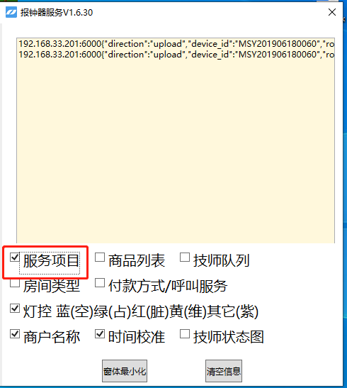 | 处理方法:检查报钟器服务是否开启,是否下单服务项目 |