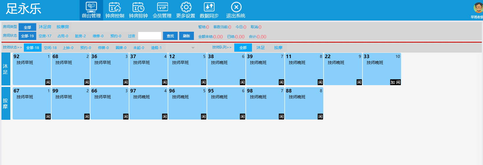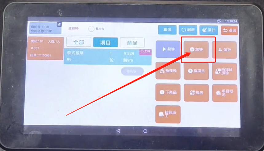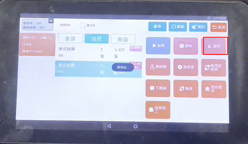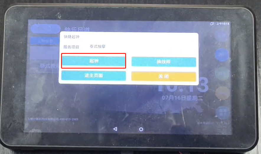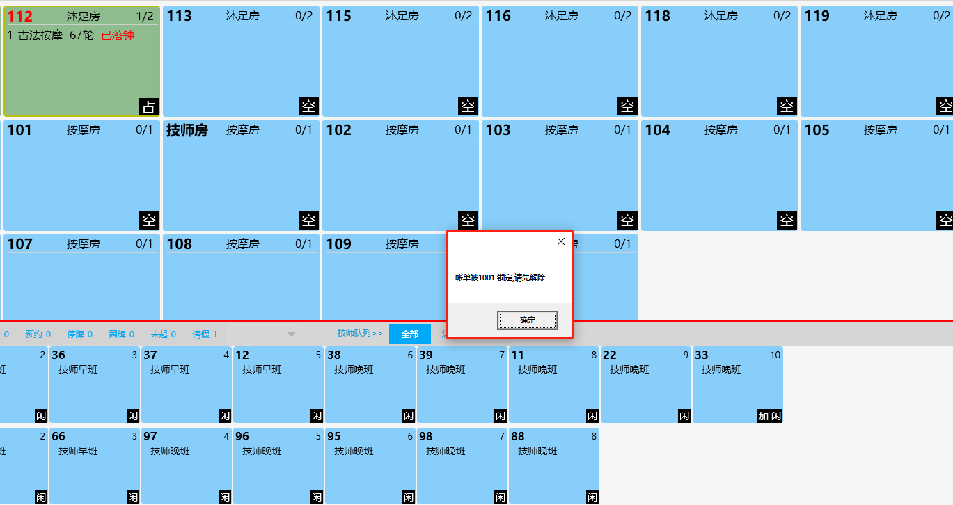 | 首先技师要起钟,首先要有对应安排这位技师的上钟信息,才可以起钟上钟 |