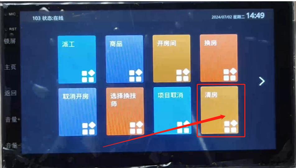 | 处理方法:客人结账后前台人员通知服务人员进入房间打扫,打扫完成后,服务人员刷卡,点击清房,即可把房间状态恢复为干净房 |