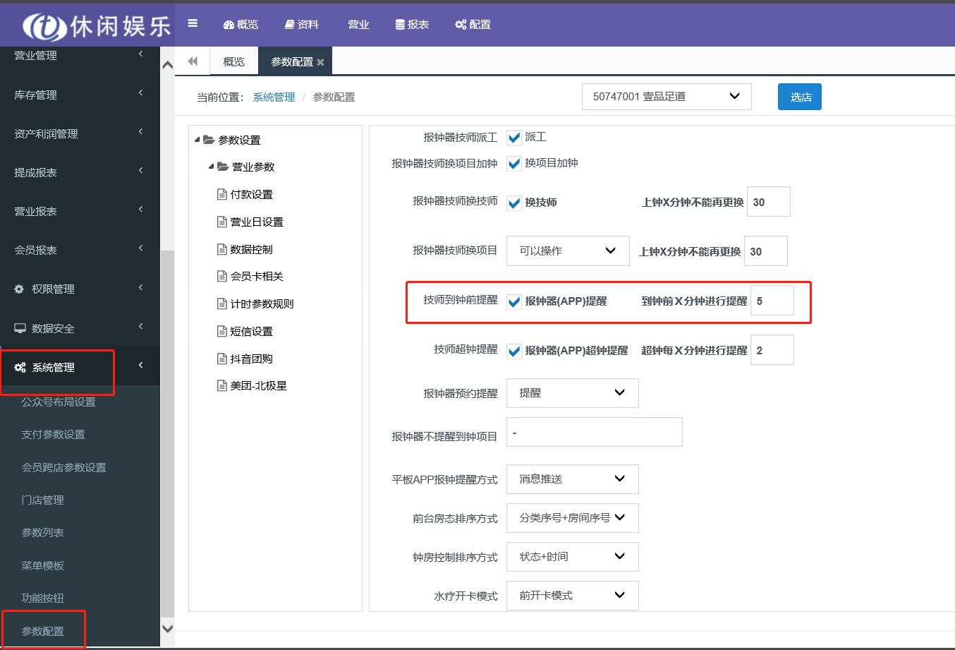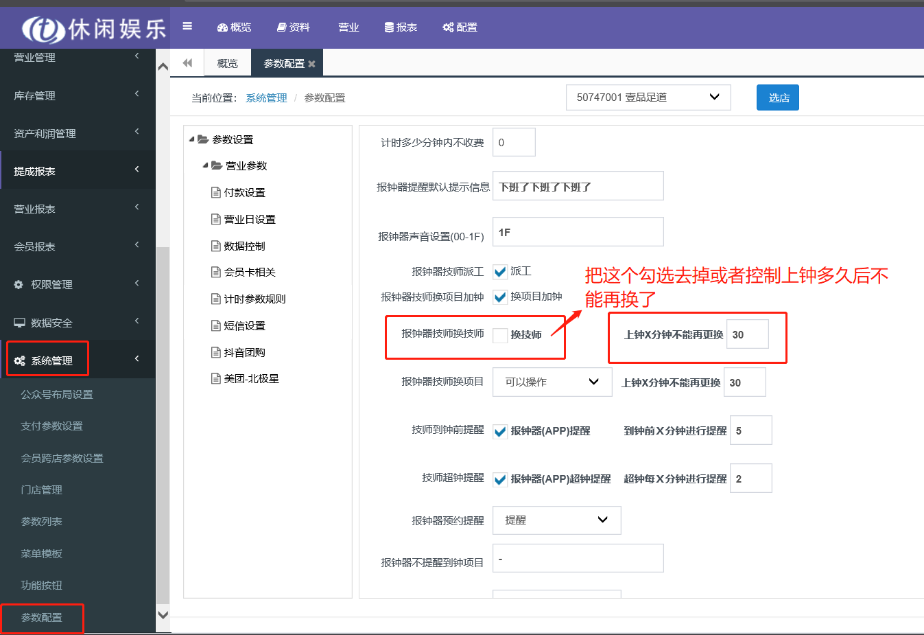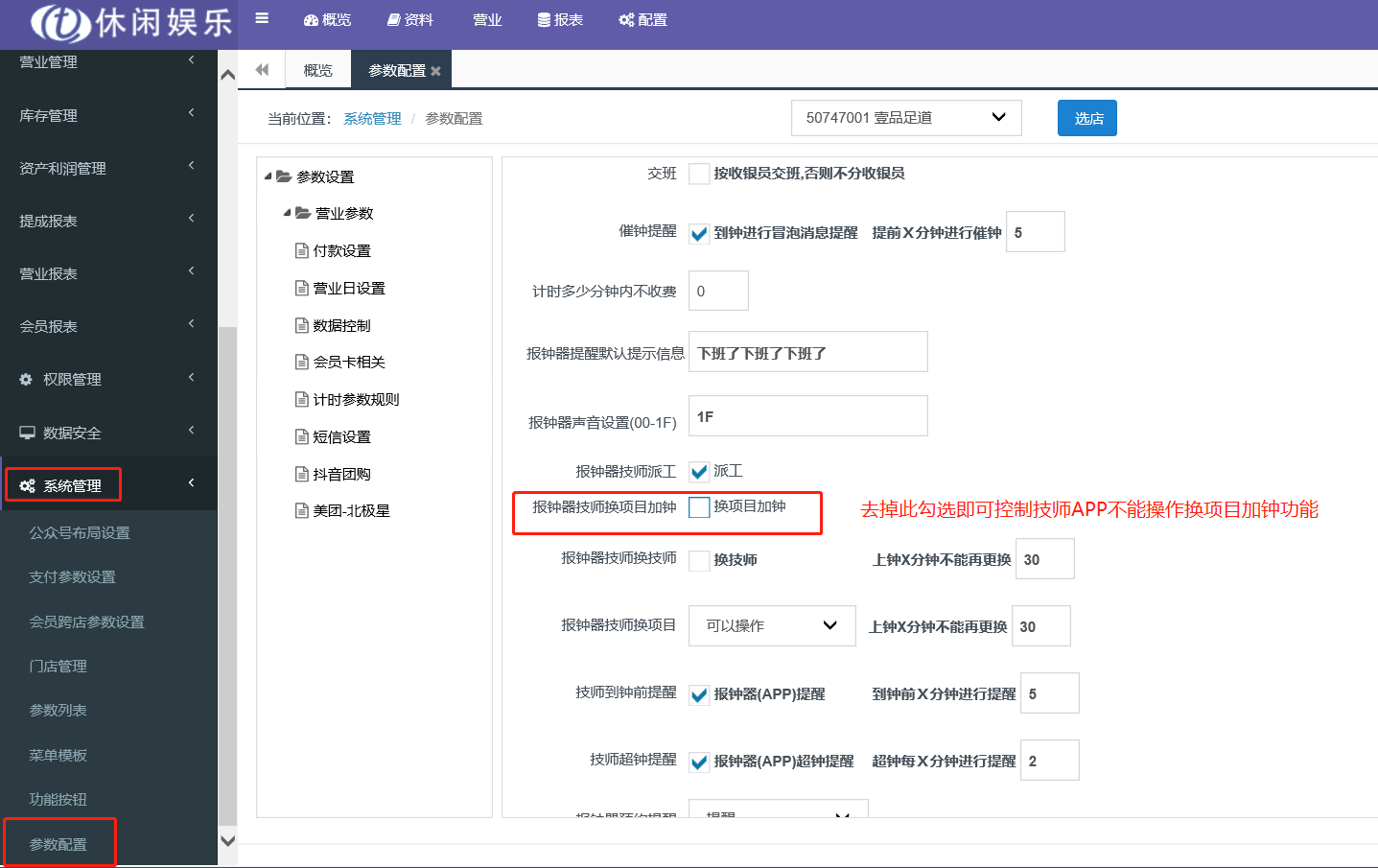 | 在后台的 ”系统管理-参数配置” 页面,下滑找到技师排位钟数显示 |