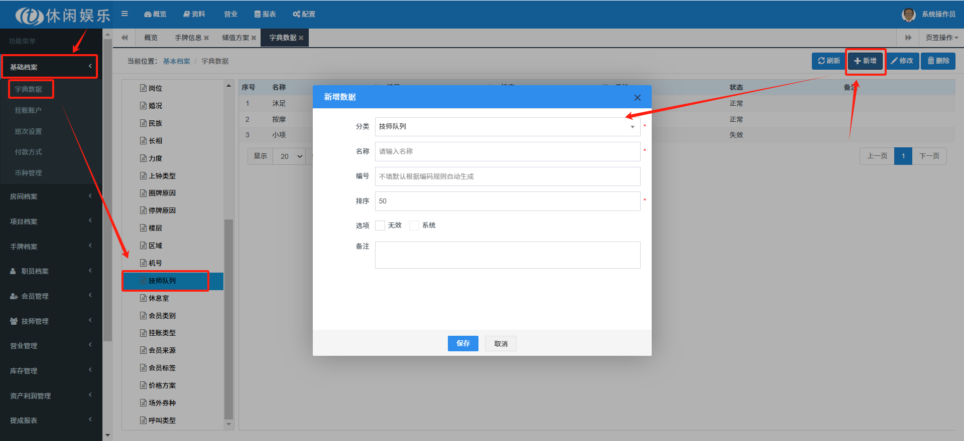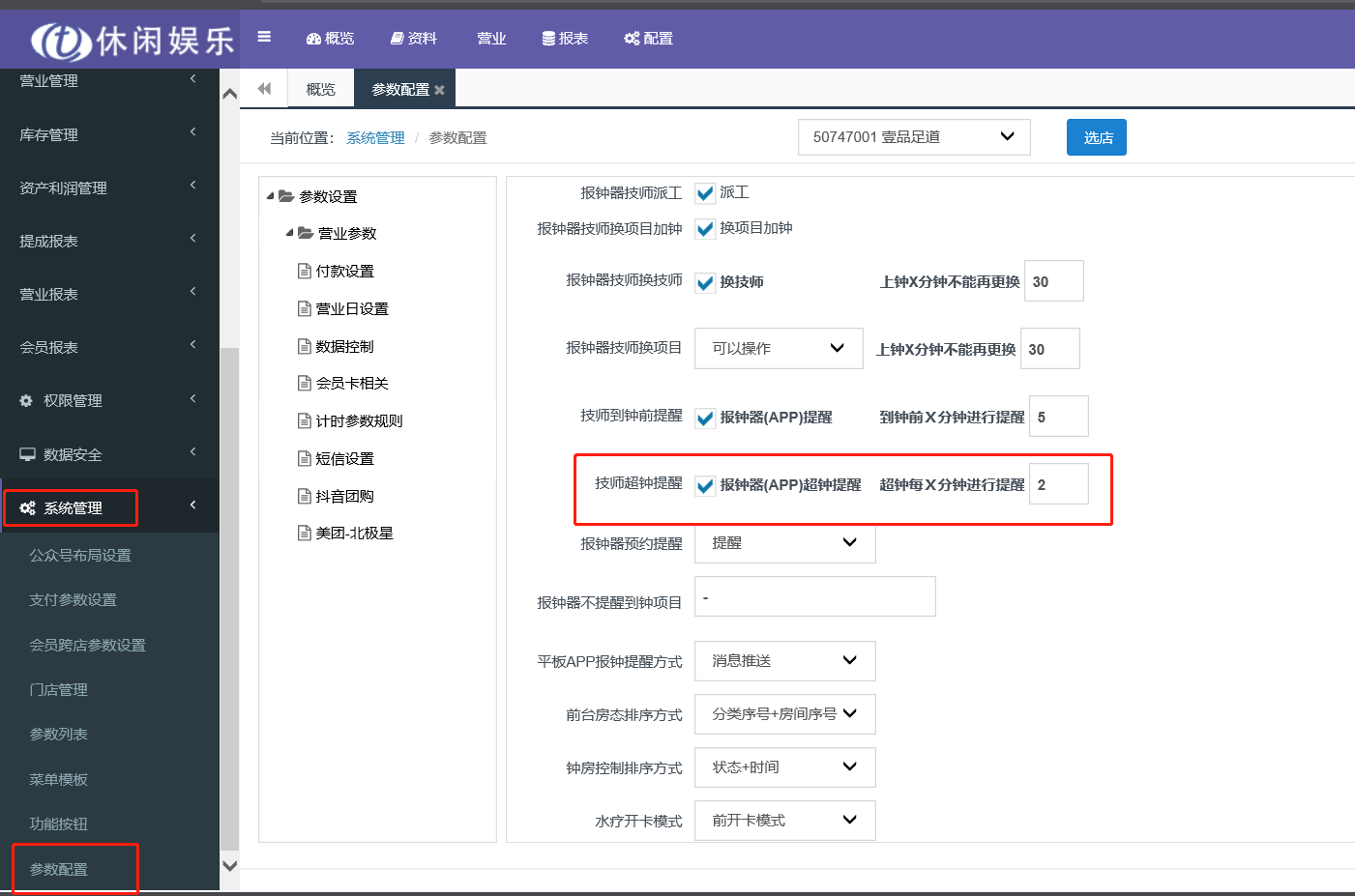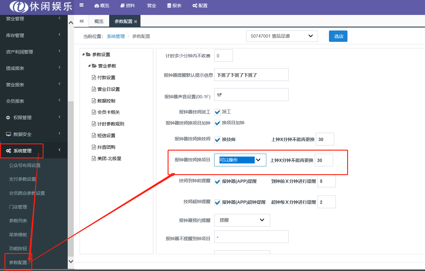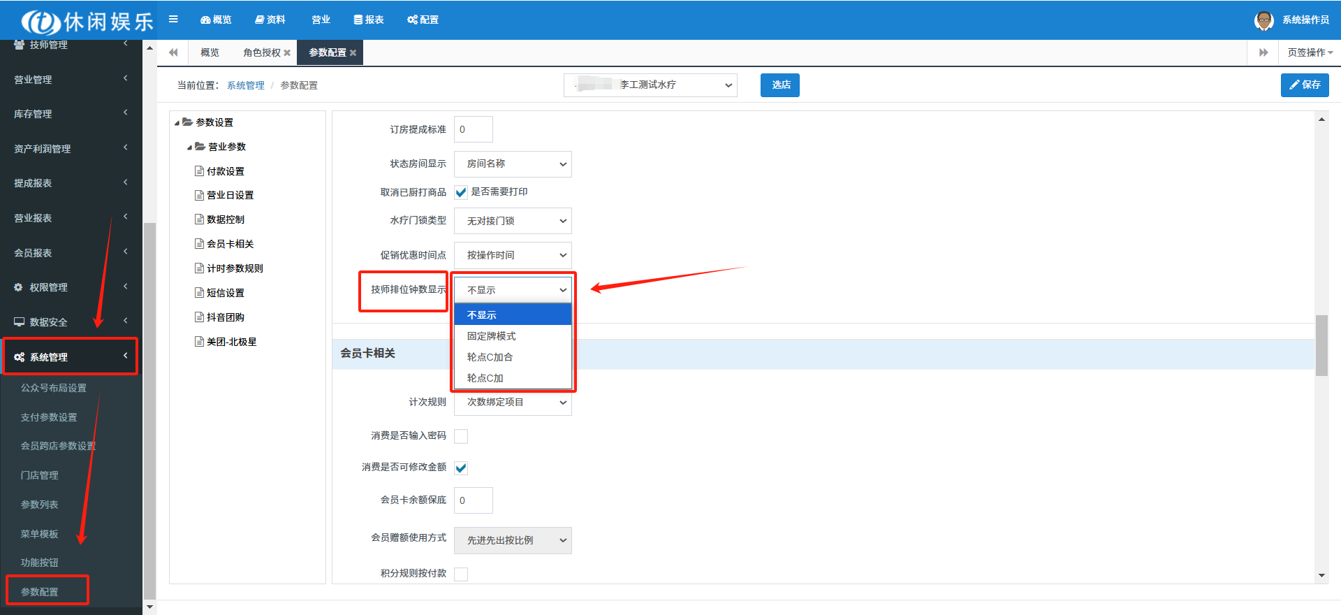 | 在后台的 ”系统管理-参数配置” 页面,下滑找到技师排位钟数显示 |