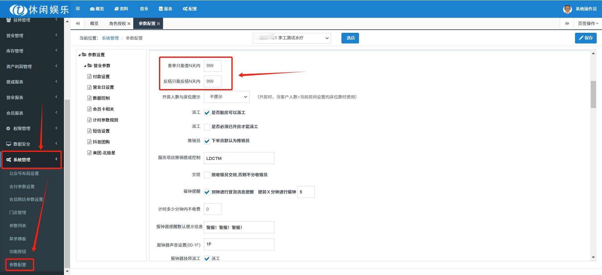 | 在后台的 ”系统管理-参数配置” 页面,下滑找到 “查单”“反结账” 天数设置 |