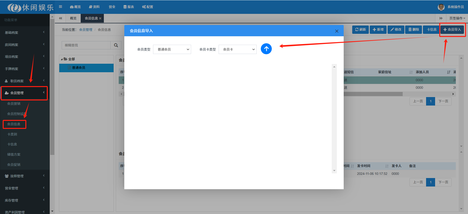 | 在后台的 ”会员管理-会员信息” 页面,点击会员导入,上传会员导入数据表即可 |