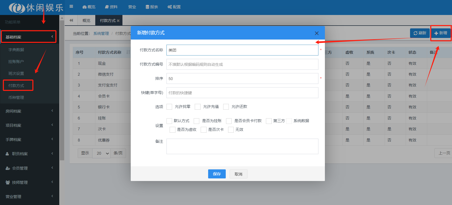 | 在后台的 ”基础档案-付款方式” 页面进行添加 |