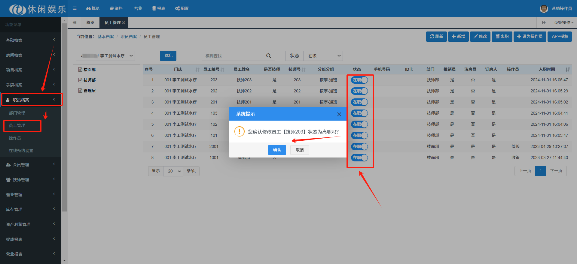 | 在后台的 ”职员档案-员工管理” 页面,选到对应技师,在职位信息里面修改技师号 |