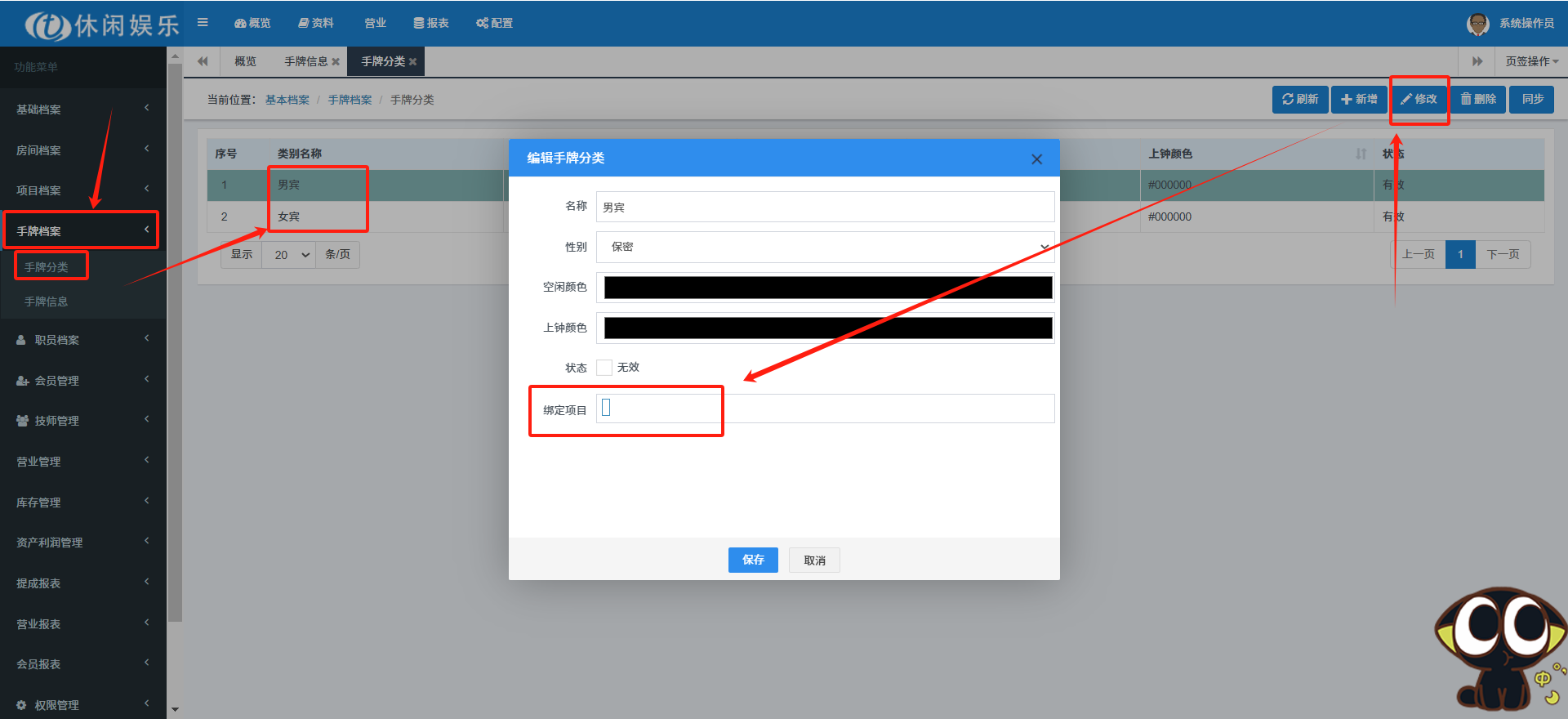 | 在后台的 ”手牌档案-手牌分类” 页面,设置手牌类别的绑定项目信息 |