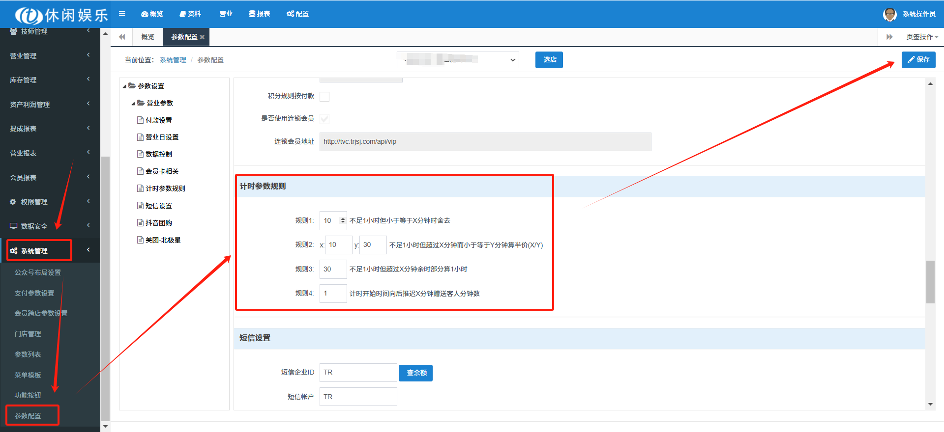 | 在后台的 ”系统管理-参数配置” 页面,下滑找到计时参数规则,设置对应规则,点击右上角保存即可 |