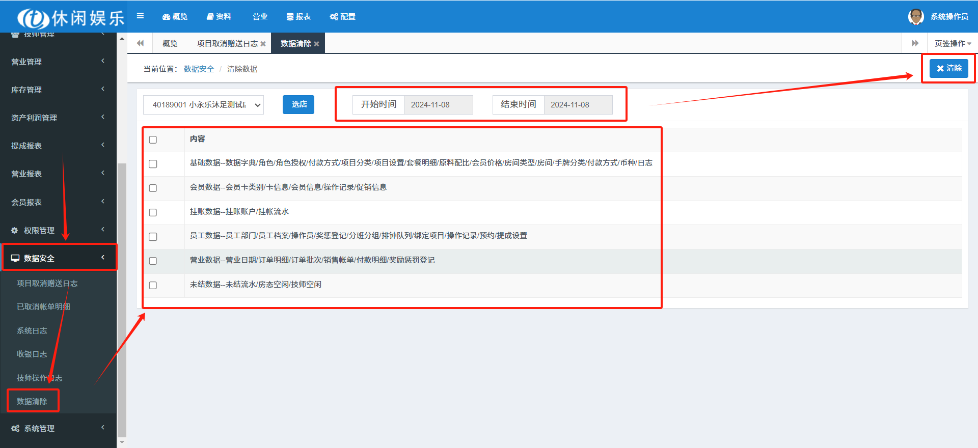 | 在后台的 ”数据安全-数据清除” 页面,勾选对应要清除的内容,选择要清除的日期,点击清除按钮输入验证码即可 |