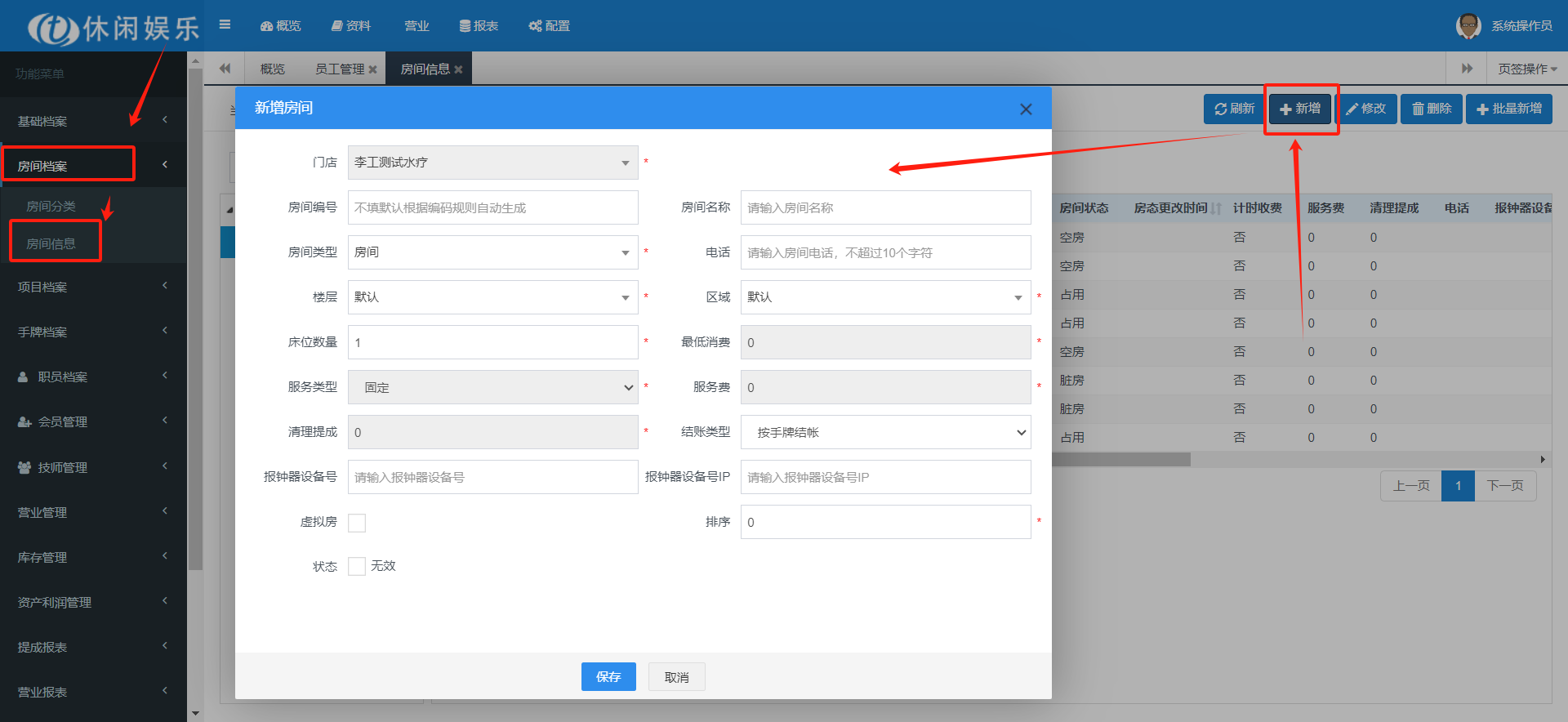 | 在后台的 ”房间档案-房间信息” 页面进行添加 |
