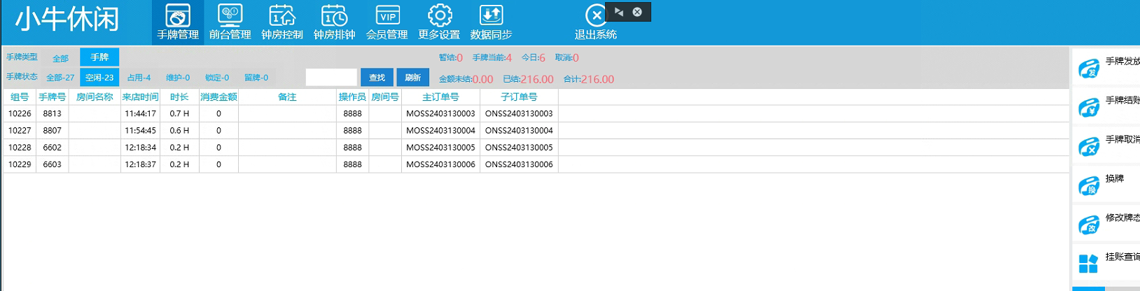 | 处理方法:请在前台收银检查客人手牌是否已发放 |
